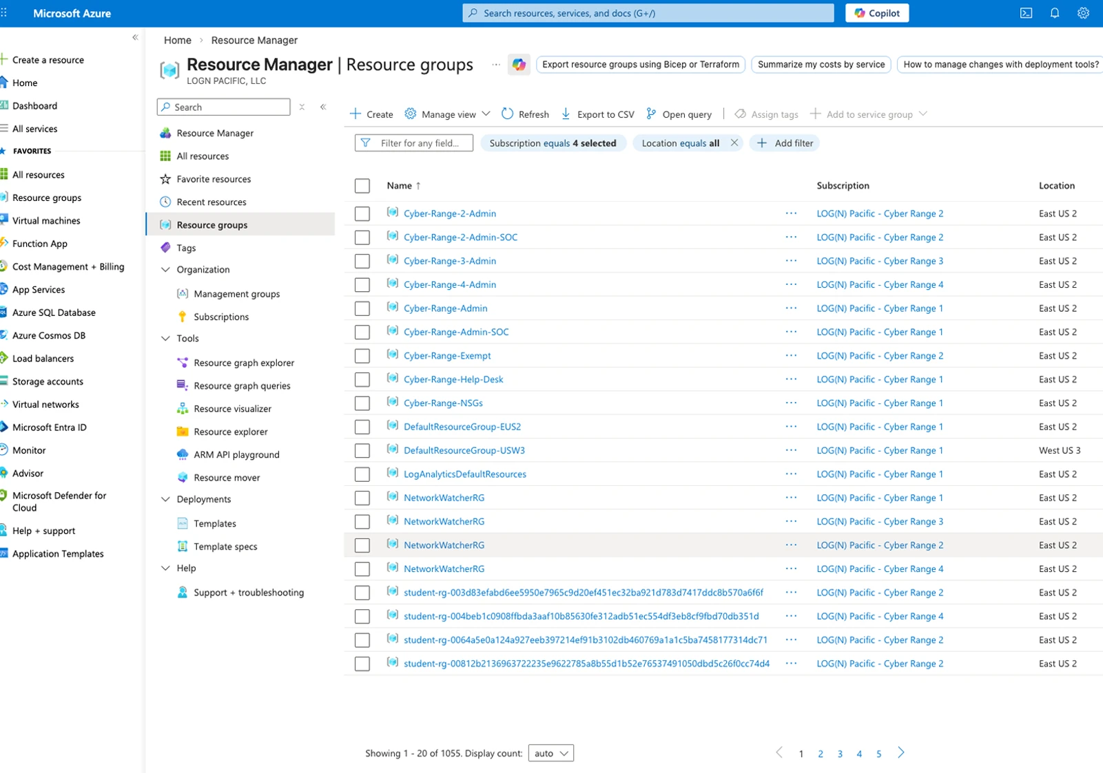 All students operate within a shared Azure tenant — just like in a real corporate environment. Everyone has read access across all subscriptions, and each student holds admin rights over their own resource group to provision virtual machines for sandboxing and honeypotting. The environment is intentionally not isolated: permissions mirror real-world settings, and students are trained to work responsibly and stay mindful of shared resources. No student-induced major incidents to date.