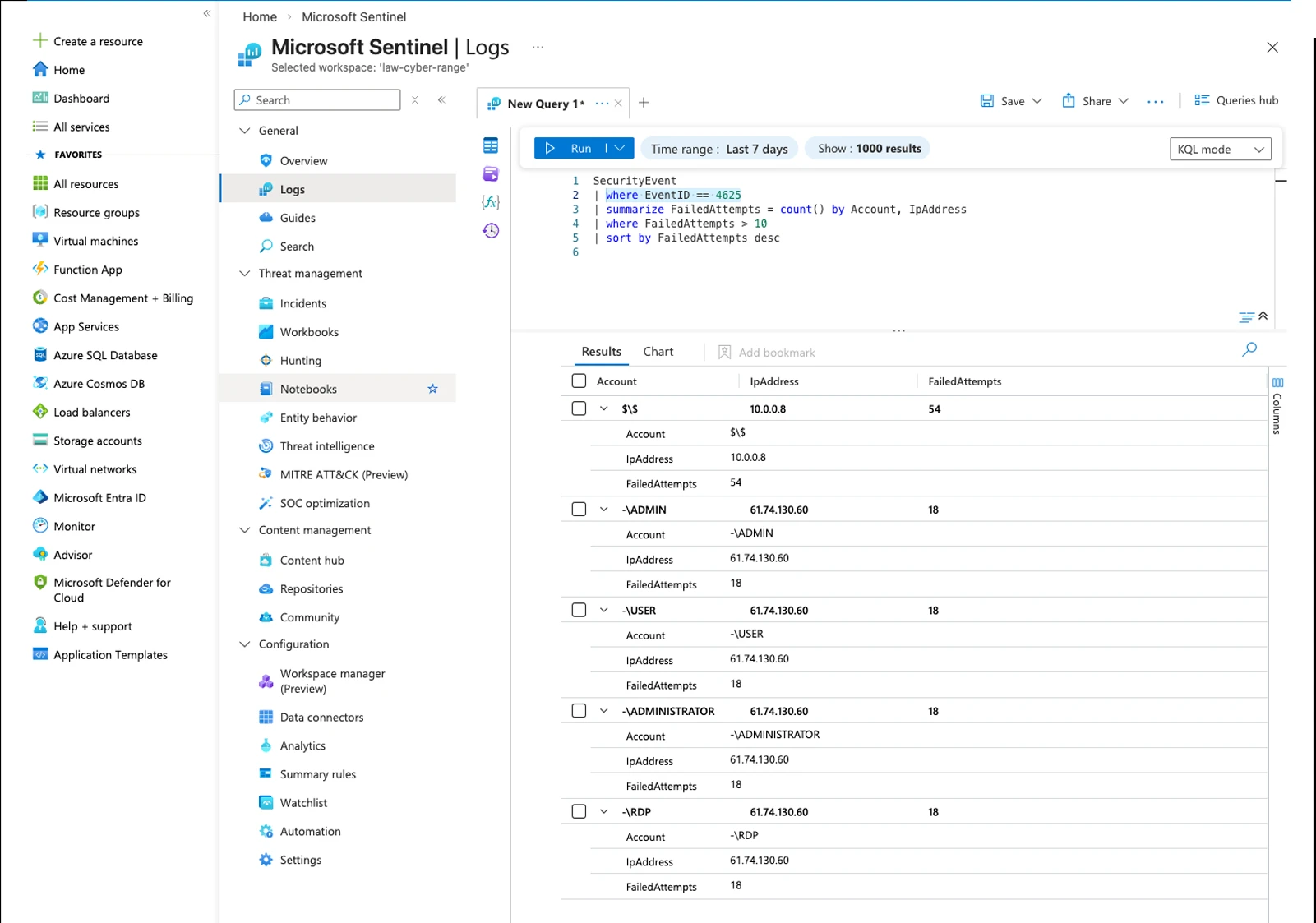 Students conduct real telemetry analysis using KQL in Microsoft Sentinel, our production SIEM. Twice a month, threat hunts put candidates through live attack scenarios with actual prize competitions on the line. Log sources span Defender for Endpoint (EDR), email telemetry, cloud applications, and externally ingested feeds. To claim one of the 10 prize spots per hunt, students must submit a detailed threat report documenting their findings and reasoning — creating a shared learning resource for the entire cohort.